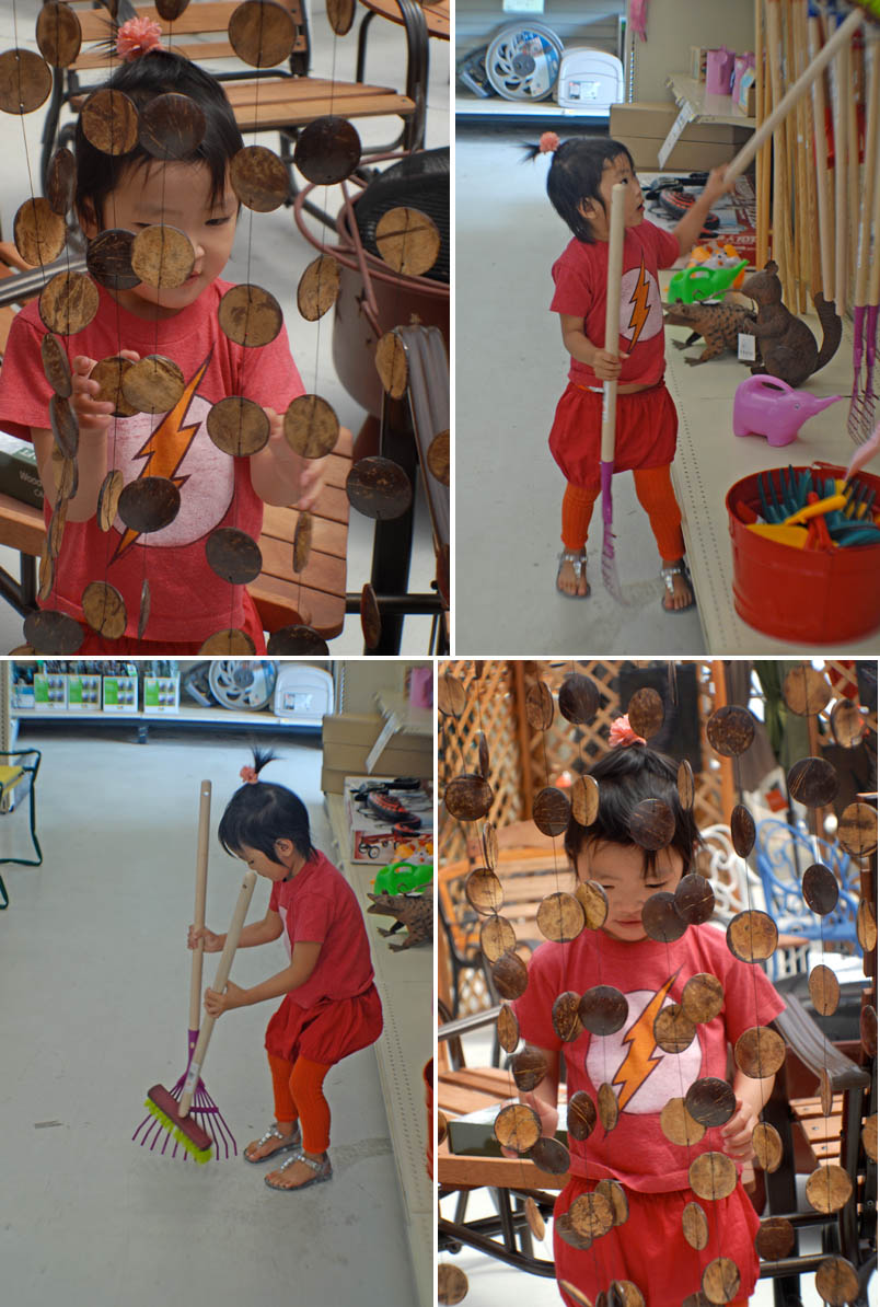 The garden center is a place of many wonders, and Q already has her favorite aisles. She likes to carry around watering cans and pretend to water the flowerpots as we go.
